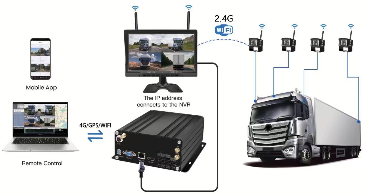 Carleader 10.1 นิ้ว 4CH Wireless HDD Mobile NVR System ซึ่งเป็นระบบ NVR แบบพกพาที่ล้ำสมัยซึ่งออกแบบมาเพื่อการจัดการยานพาหนะ ระบบใช้กล้อง IP ไร้สาย 4 ชิ้นจับคู่กับจอภาพ wireelss ขนาด 10.1 นิ้วผ่านสัญญาณ 2.4GHz จากนั้นเชื่อมต่อจอภาพและ NVR ด้วยขั้วต่อ RJ45 ไม่จำเป็นต้องมีปัญหาการเดินสายไฟเพิ่มเติม มีประสิทธิภาพมากขึ้นในการติดตั้งและการจัดการยานพาหนะ