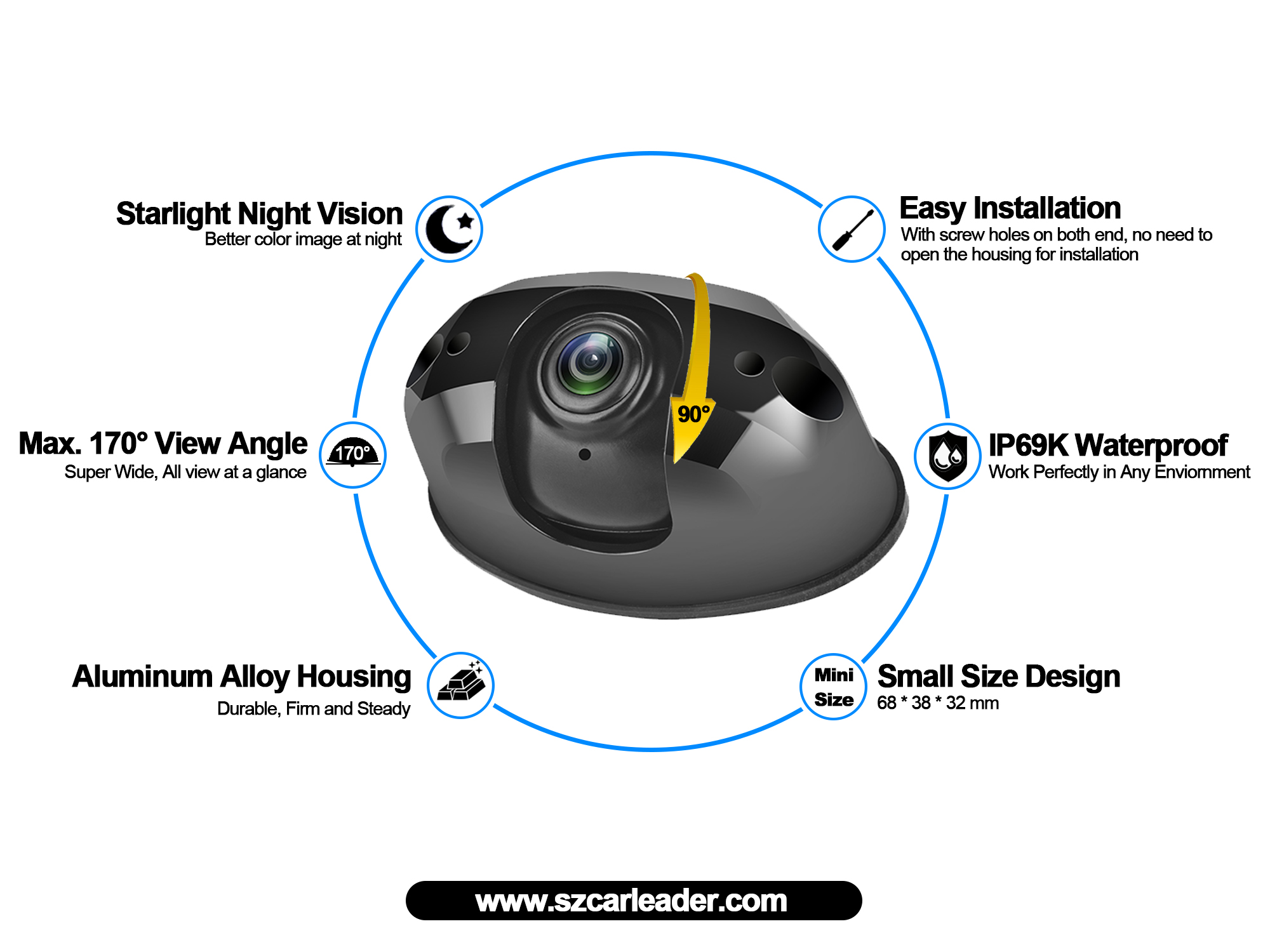 เราภูมิใจนำเสนอคุณ คาร์ลีดเดอร์ AHD มุมมองกว้าง 170 องศากล้องสำรองสำหรับงานหนักกันน้ำ.
