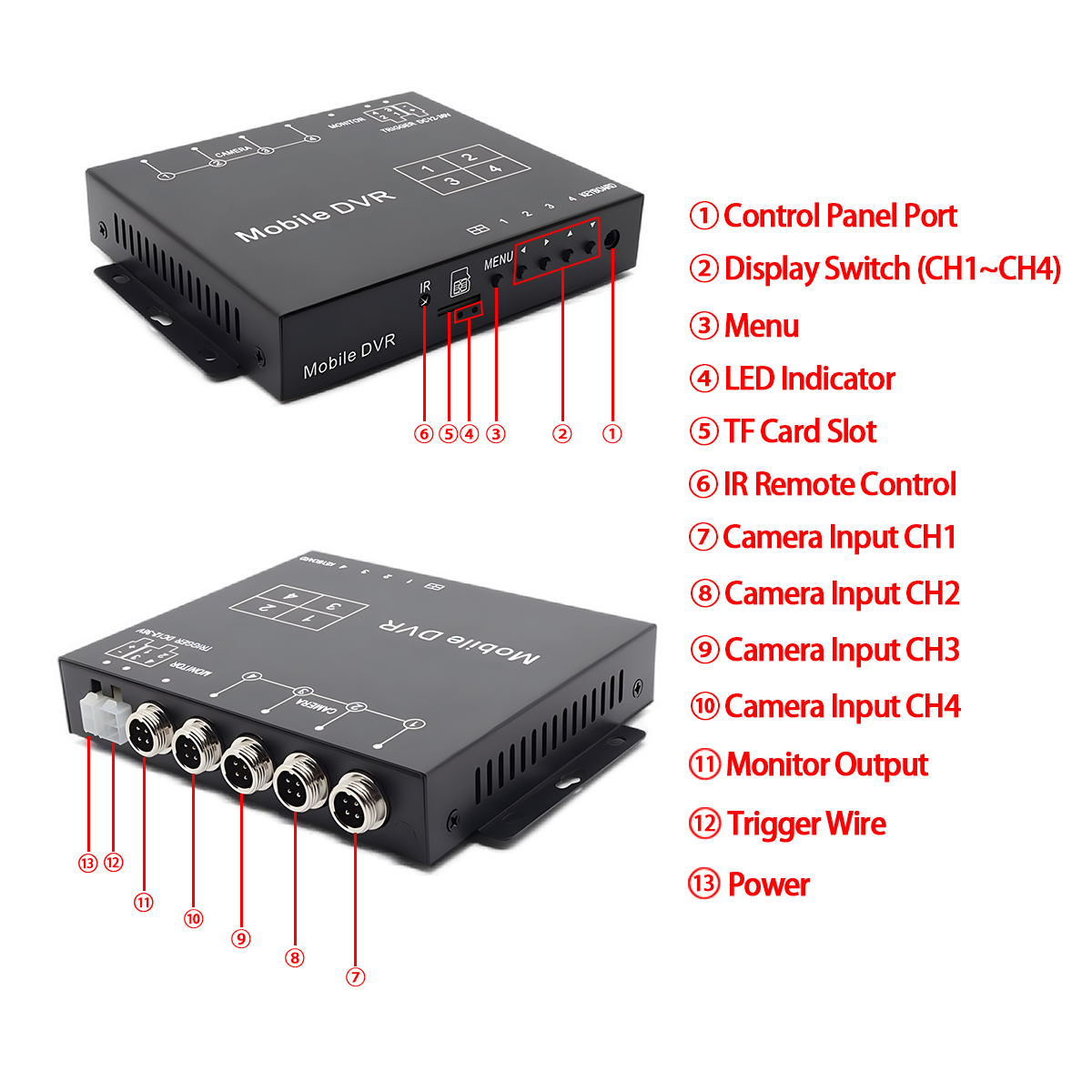 กล่องแยกสัญญาณรูปสี่เหลี่ยมนี้เหมาะสำหรับรถบรรทุกและยานพาหนะเพื่อการพาณิชย์ รถบัสและรถโค้ช ยานพาหนะฉุกเฉินและความปลอดภัย งานก่อสร้างและอุปกรณ์หนัก ยานพาหนะอื่นๆ ที่ต้องใช้กล้องหลายตัวและฟังก์ชันบันทึก