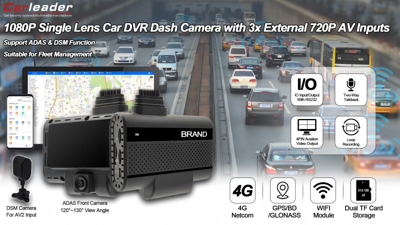 ผู้นำรถ4CH AI ขับเคลื่อน ADAS+DSM Dash Camera รองรับเอาต์พุตวิดีโอ เหมาะสำหรับ: กลุ่มยานพาหนะเชิงพาณิชย์ ยานพาหนะโลจิสติกส์ การขนส่งสาธารณะ และยานพาหนะส่วนบุคคลที่ต้องการความปลอดภัยที่เพิ่มขึ้น การตรวจสอบแบบเรียลไทม์ และการบันทึกเหตุการณ์ที่เชื่อถือได้
